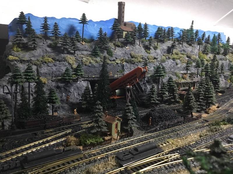 Het is nu opgelost door een los element te plaatsen wat ik aan de achterkant op de baan klem. De scenery is zo gemaakt dat je niet kan zien dat het een lossen berg is. En kan ik hem makkelijk opbergen onder de schuine kant van mijn zolder. Je word vanzelf vindingrijk als het om ruimtegebrek gaat.