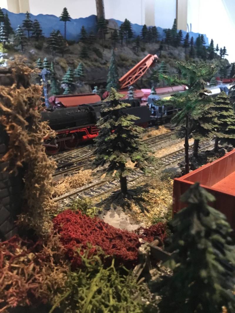 Er zijn heel veel nieuwe dennenboompjes geplaatst en ook de scenerij heb ik aangepakt waar nodig was. Zeker kleine dingen zoals werklui, kisten en houtstapels. Maar ook een hoop groen gemaakt van ijslands mose en ander materiaal. Als het maar uit de jaren 1980 stamt, want dat is het tijdperk wat ik wil maken.