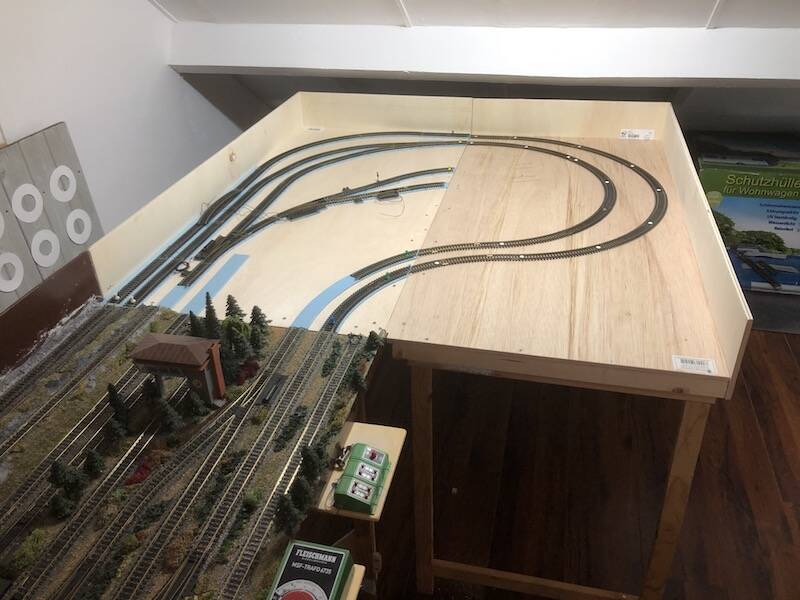 Begonnen met de 2 volgende modules die er voor moeten zorgen dat de treinen straks in ieder geval hun eerste halve rondjes kunnen gaan rijden. Dan heb ik iets meer ruimte inplaats van heen en weer op het rangeer gedeelte. Om de werkzaamheden te volgen wat ik zoal doe met de modules zoals bedrading, rails overlopen en straks de scenery, volg het weblog.