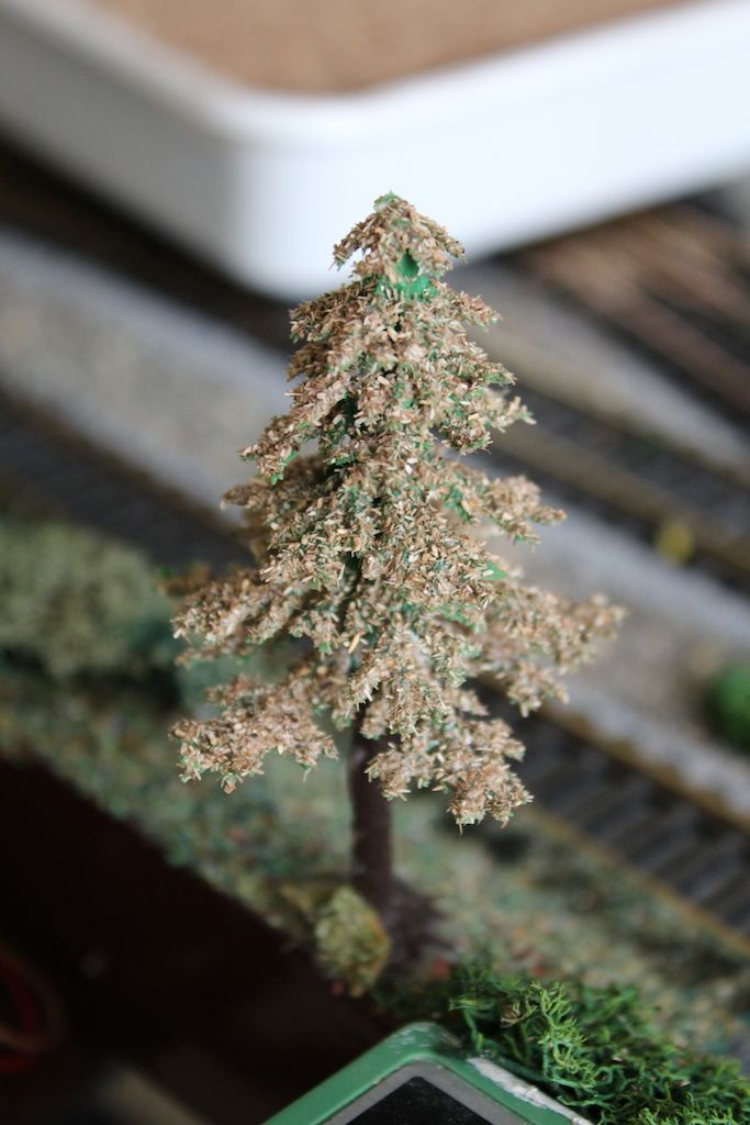 Een tip die ik kreeg van herwim was om de boompjes wat bij te knippen. Dus wat stukjes inkorten hier en daar zodat je niet echt van die symetrische boompjes hebt. Daarna bespuiten met lijm en wat strooisel zoals gras eroverheen gooien. Dan krijg je dus zeker iets echtere boompjes.