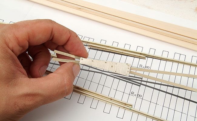 Het zelf bouwen van wissels is niet heel anders dan het spijkeren van rails. Alhoewel, zelf bouwen... Je kunt een wissel echt helemaal zelf bouwen en alle onderdelen stuk voor stuk fabriceren. Dat is me toch wat te veel werk en daarom maak ik graag gebruik van de bouwpakketten van Hassler en van de onderdelen van Wenz.