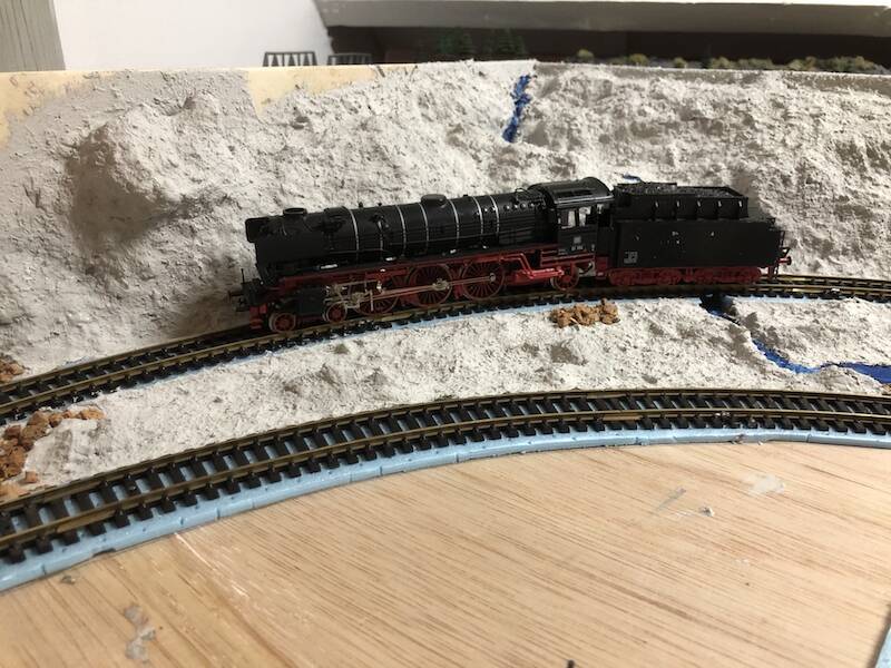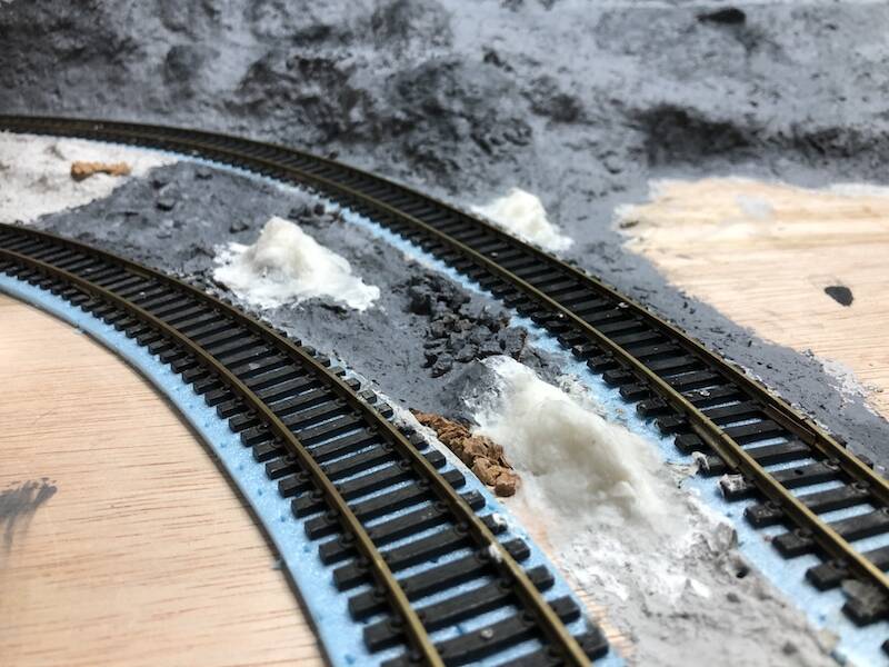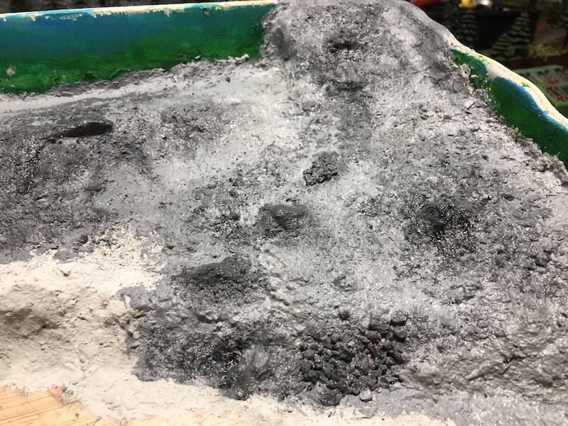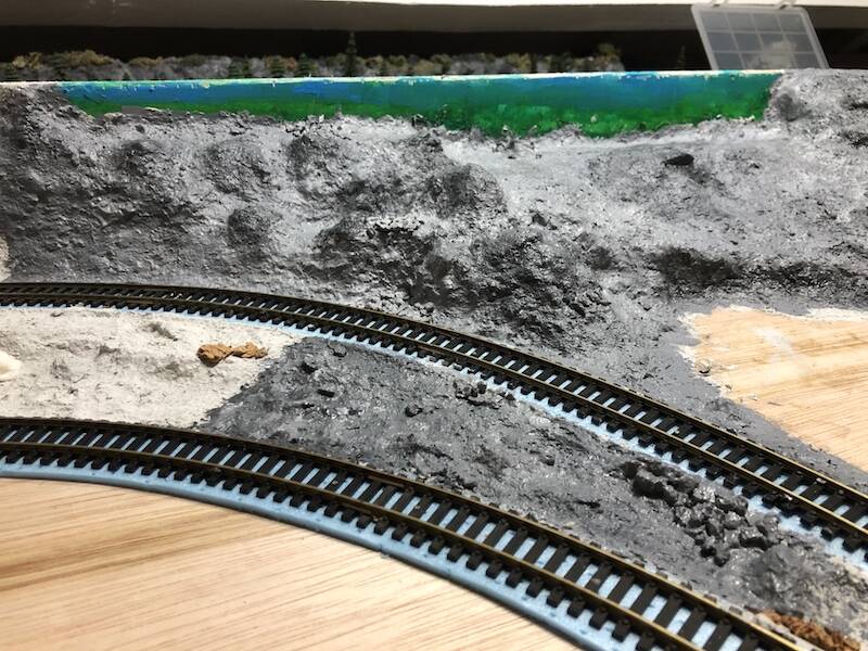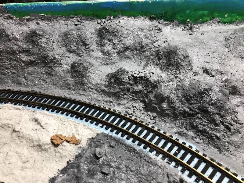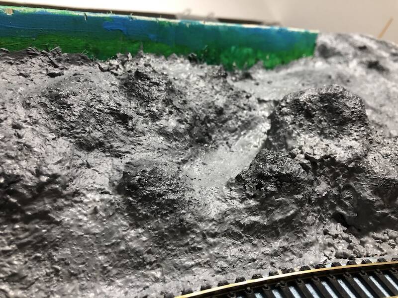 Om nog meer het idee te krijgen hoe de bergen eruit gaan zien gaat alles in de grijze verf.