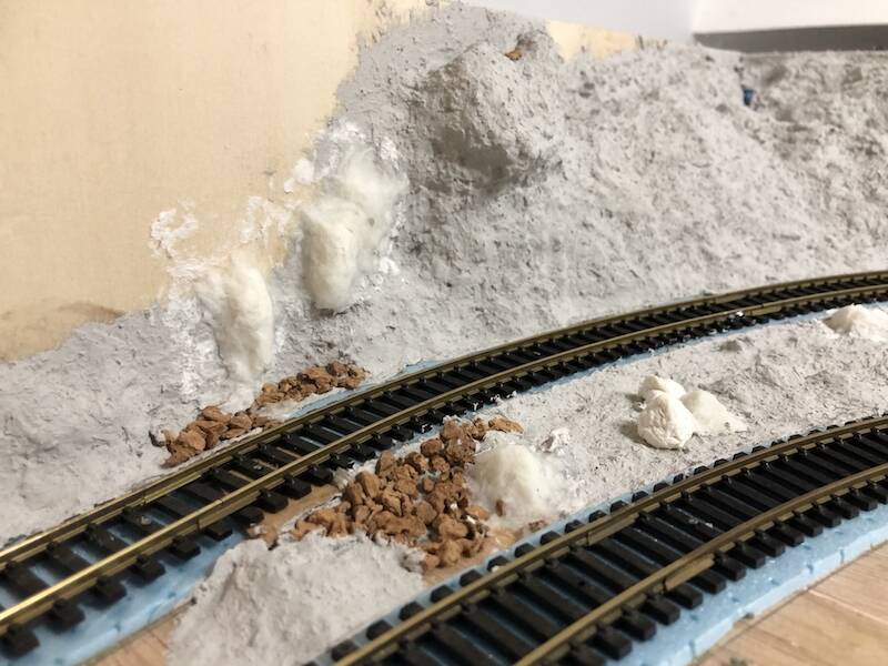 Een tip die ik gekregen had op het Benelux-forum was witsel met zaagsel mengen. Dan krijg je meer het grove effect wat bergen nodig hebben.