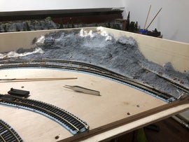 Aangezien ik nog wat tempex en papier mache over heb, gelijk maar even op de andere module ook gestart met de hoekberg.