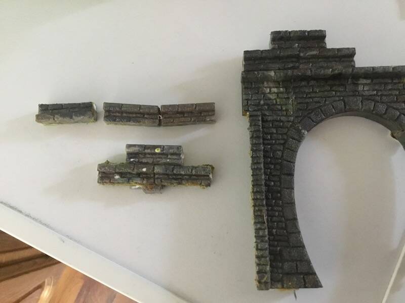 De bovenkant verder afgewerkt met een aantal stenen blokken waardoor je ook gelijk de naad van de berg weg haalt. Omdat de berg eraf te halen is, kun je niet alles helemaal vastzetten zoals je normaal zou doen. Maar in het begin heb ik er al rekening mee gehouden dat ik de tunnen ingang zou bewerken, waardoor ik een vast gedeelte heb waar ik de tunnel onderdelen aan vast kan lijmen, zonder dat de berg daar last van heeft.