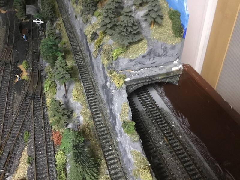 Ook de zijkanten bewerkt met platte stenen platen, deze heb ik op de beurs in Utrecht gekocht 2e hand, dus ook daar weer voor weinig geld iets van gemaakt. Bovenop ben ik nu bezig met de begroeiing zodat het er allemaal wat realistischer uit gaat zien. Ik moet de tunnelwand nog wel gaan smetten, want het ziet er nu allemaal veel te netjes uit.